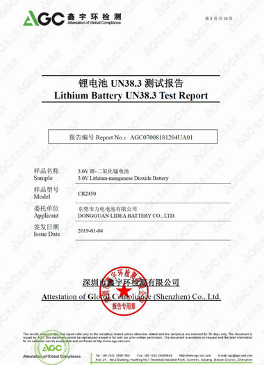 UN38.3測試報(bào)告-CR2450